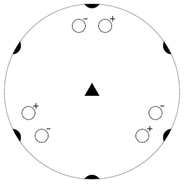 View PDFAbstract:Point groups and space groups provide a convenient way to describe the spatial arrangement of atoms in molecules and crystals, and are powerful tools in the prediction of their physical properties. Previous works [1], [2] have extended these groups to include temporal symmetry operations. This work presents a reformulation of the listing of crystallographic point groups with time translations, using a template similar to space group operations. A simple method is presented to visualize these groups by modifying conventional stereographic projections. Examples of physical processes are identified, which may benefit from a group theoretical analysis that considers both spatial and time-translational symmetry.