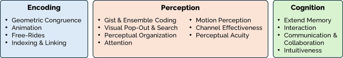 The third type of factors impacting effectiveness are related to cognition. This refers to the way a visualization supports conscious reasoning. It includes, for instance, the use of graphics to extend working memory and interactive manipulation of the visualization.