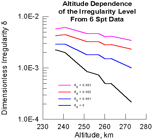 on altitude. We need to determine also the model of natural irregularities which determines background anomalous attenuation. Let us suppose that natural irregularities are described by the same spectrum (4) with the same parameters
