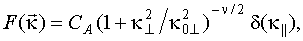 . Let us consider that irregularities in the given band of scales strongly stretched along the lines of force of geomagnetic field and characterize them by the spectrum of the following kind