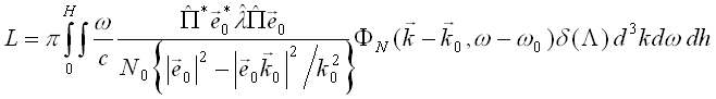 where is unit polarization vector of incident wave, - spatial and frequency spectrum of random irregularities, V è T - the volume of plasma and the time of its interaction with wave filed. Assuming that the infinitely small absorption is present we can use the limiting transition [13]: