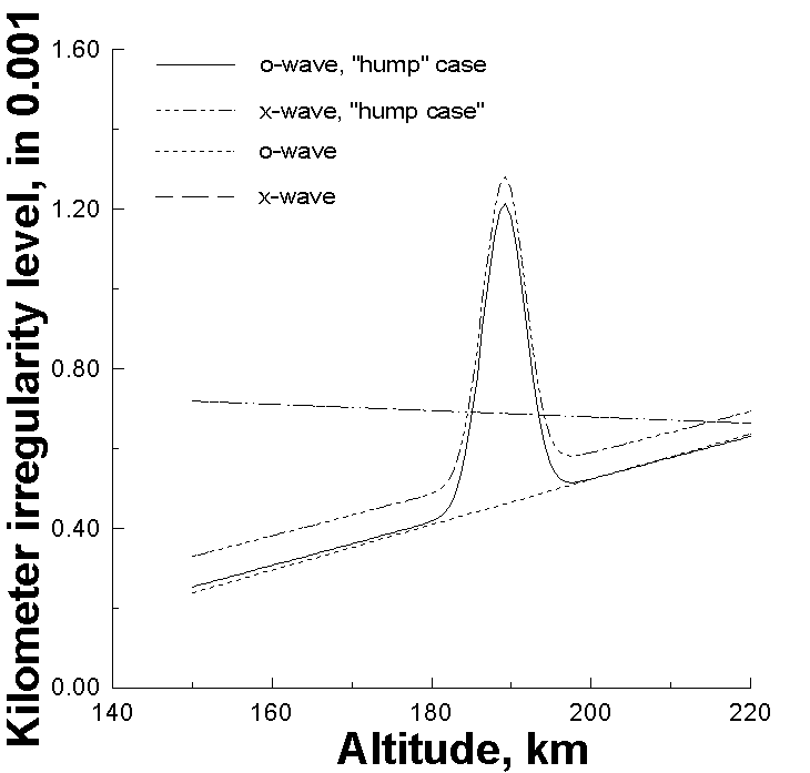 6.1. First step - using of extraordinary probe wave for kilometer-scale irregularity diagnostics. Here one deals only with multiple scattering mechanism.